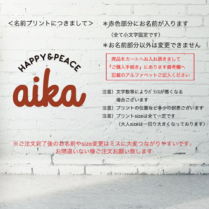 ● プリントの大きさにつきまして ● お名前の文字数により見本よりプリントの大きさが前後してくる場合もございます。